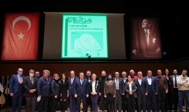 Konak Belediyesi ve İzmir Gazeteciler Cemiyeti’nin (İGC) bu yıl 5’incisini düzenlediği Eflatun Nuri Ulusal Karikatür Yarışması Ödül Töreni Ahmet Adnan Saygun Sanat Merkezi’nde yapıldı. 10 Ocak Çalışan Gazeteciler Günü’nünün de kutlandığı törene Konak Belediye Başkanı Abdül Batur, İzmir Gazeteciler Cemiyeti Başkanı Dilek Gappi, Eflatun Nuri Ulusal Karikatür Yarışması Genel Koordinatörü Karikatürist Sadık Pala, İGC önceki dönem Başkanı Misket Dikmen, CHP Konak İlçe Başkanı Akın Küçükoğullarından, İyi Parti Konak İlçe Başkanı Coşkun Tatar, CHP ve İyi Parti İzmir İl Yöneticileri, Konak Belediyesi Meclis Üyeleri, İGC Yönetim Kurulu Üyeleri, muhtarlar, sivil toplum ve demokratik kitle örgütleri ile oda temsilcileri ve çok sayıda davetli katıldı. Türkiye’nin köklü müzik grubu Moğollar’ın muhteşem konseriyle taçlanan törende Ferhan Şensoy’un kızı Derya Şensoy video mesajıyla, CHP İzmir Milletvekilleri Tuncay Özkan, Bedri Serter ve Atila Sertel ile Basın Konseyi Başkanı Pınar Türenç de gönderdikleri mesajlarıyla ödül törenine katılanları selamladı.