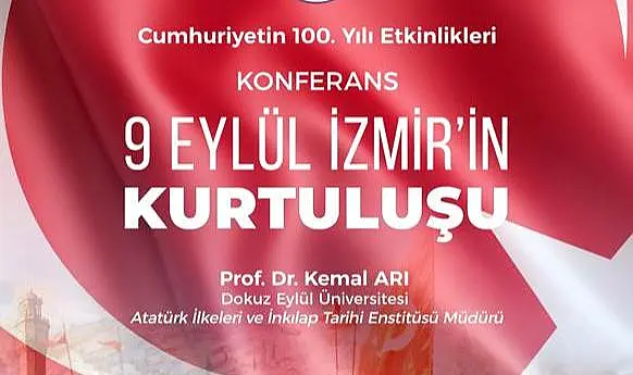 Ege Üniversitesi tarafından Türkiye Cumhuriyetinin 100. Yılı Etkinlikleri kapsamında ‘Türkiye Yüzyılı’ mottosu ile çok sayıda bilimsel etkinlikten kültürel etkinliğe, sanatsal faaliyetlerden sportif faaliyetlere kadar geniş yelpazede bir dizi etkinlik düzenlenecek. Bu kapsamda İzmir’in düşman işgalinden kurtuluşunun 101’inci yıl dönümü dolayısıyla Ege Üniversite Rektörlüğü tarafından “9 Eylül İzmir’in Kurtuluşu” konulu bir konferans gerçekleştirilecek.