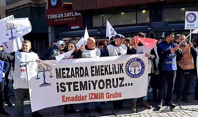 Emeklilikte Adalet Derneği (EMADDER) İzmir Temsilciliği, kademeli emeklilik talebiyle Alsancak Türkan Saylan Kültür Merkezi önünde basın açıklaması düzenledi. Emeklilikte Yaşa Takılanlar (EYT) düzenlemesinde 9 Eylül 1999 tarihinden sonra sigortalı olanların mağdur edildiğini öne süren EMADDER üyeleri, “Mezarda emeklilik istemiyoruz”, “2000 sonrası SGK'lıya adil kademeli emeklilik haktır” pankartı arkasında bir araya geldi, “Hak hukuk adalet”, “Kademe gelecek yüzler gülecek”, “Zafer direnen emekçinin olacak” sloganlarını attı.