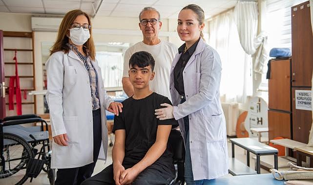 6 Şubat depremleri sırasında Osmaniye’de enkaz altına kalarak yaralanan 14 yaşındaki Mustafa Elmas omuriliğindeki zedelenme nedeniyle yatağa bağımlı hale geldi. Depremde anne ve babasını da kaybeden Mustafa’nın yeniden yürüyebilmesi için yoğun bir tedavi ve bakım süreci geçirmesi gerekiyordu. İzmir Büyükşehir Belediye Başkanı Tunç Soyer’in talimatıyla Eşrefpaşa Hastanesi’ne getirilen genç Mustafa, burada uygulanan fizik tedavi sayesinde ilk adımlarını kısa sürede attı.