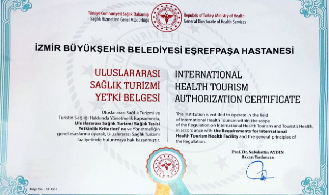 Sağlık alanında önemli çalışmalara imza atan İzmir Büyükşehir Belediyesi Eşrefpaşa Hastanesi başarısını aldığı “Uluslararası Sağlık Turizmi Yetki Belgesi” ile taçlandırdı. Hastanede artık yurtdışından hastalara da sağlık hizmeti verilecek.