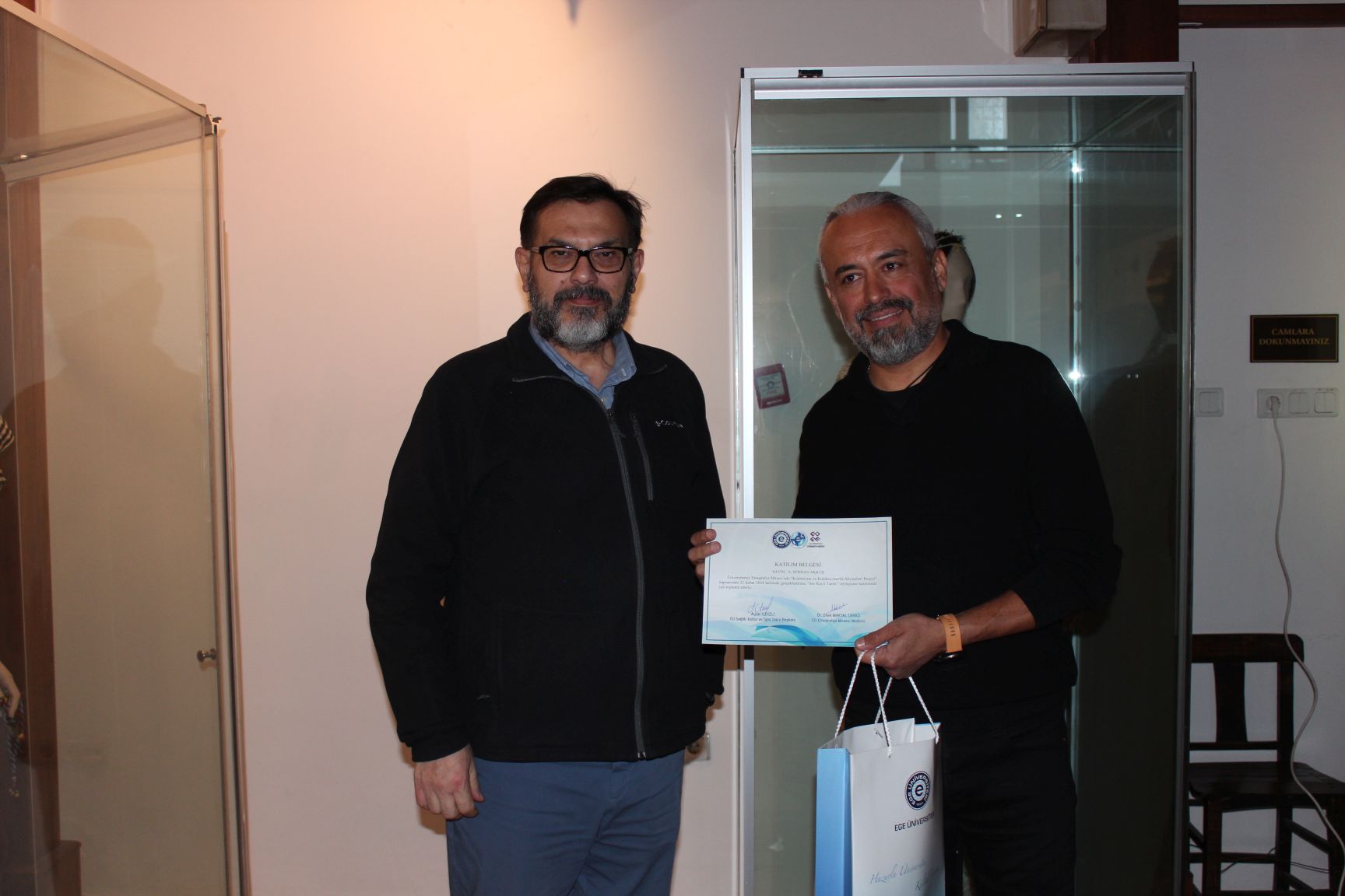Serhan Akkuş, söyleşinin ardından katılımcıların koleksiyonuyla ilgili sorularını yanıtladı. Etkinlik sonunda Doç. Dr. Haluk Sağlamtimur, Serhan Akkuş’a “Teşekkür Belgesi” takdim etti.