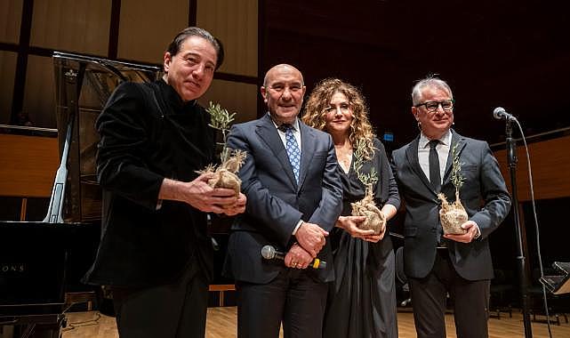 Konuşmaların ardından Başkan Soyer, Fazıl Say ile Serenad Bağcan ve Yekta Kopan'a zeytin fidanı verdi. Sanatçılar 6 Mart'ta depremzedeler için bir kez daha sahne alacak.