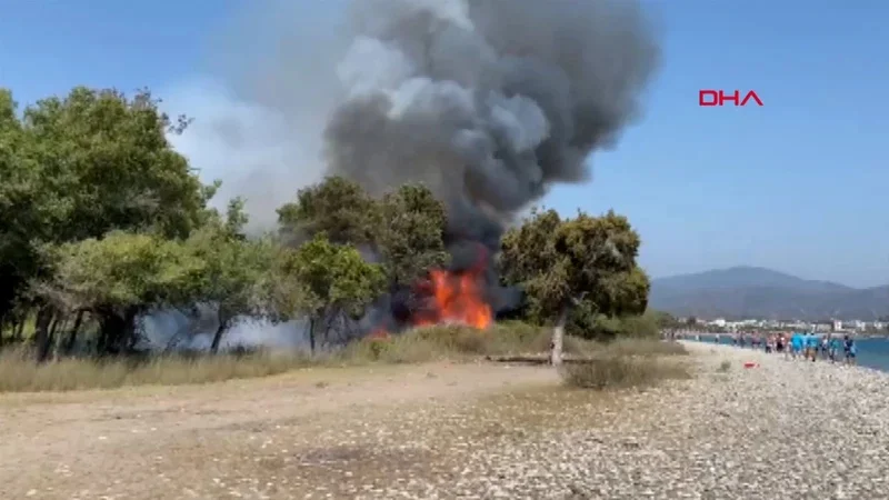 Fethiye’de Akmaz Plajı yakınlarında saat 15.00 sularında başlayan orman yangını, Muğla Orman Bölge Müdürlüğü’ne bağlı helikopter, uçak ve çok sayıda arazöz ile itfaiye ekiplerinin müdahalesiyle söndürülmeye çalışılıyor.