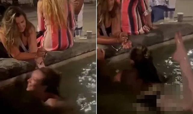 Havuzun kenarında şaşkınlıkla kendisini izleyen diğer insanları da suya davet eden kadına tepki yağdı.