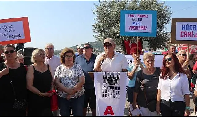 Foça Nihat Dirim Barış ve Demokrasi Meydanı’nda Atatürkçü Düşünce Derneği (ADD) Foça Şubesi öncülüğünde gerçekleştirilen protesto eylemi ve basın açıklamasına Cumhuriyet Halk Partisi(CHP), İyi Parti, Türkiye İşçi Partisi (TİP), Foça Tarih ve Doğa Talanına Hayır Platformu, Eğitim-Sen, Eğitim İş- Sen, ADD, Yap Bi iyilik ve Ortaklar Öğretmen Okullular (Adabelenliler) Derneklerinin üyeleri ile vatandaşlar katıldı.