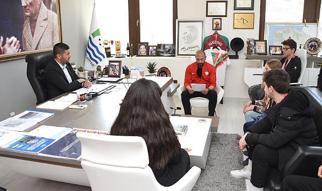 Foça Belediye Başkanı Fatih Gürbüz’ü ziyaret eden Taekwondo Şubesi, son günlerde katıldıkları müsabakalar, başarıları ve çalışmaları hakkında bilgiler verdi.