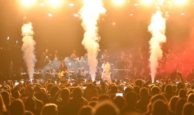 Toplam 100 kişiden oluşan orkestra ve koroyla yine görkemli bir konsere imza atan Gazapizm, beyaz trençkotu ve takım elbisesi içinde çok şıktı.