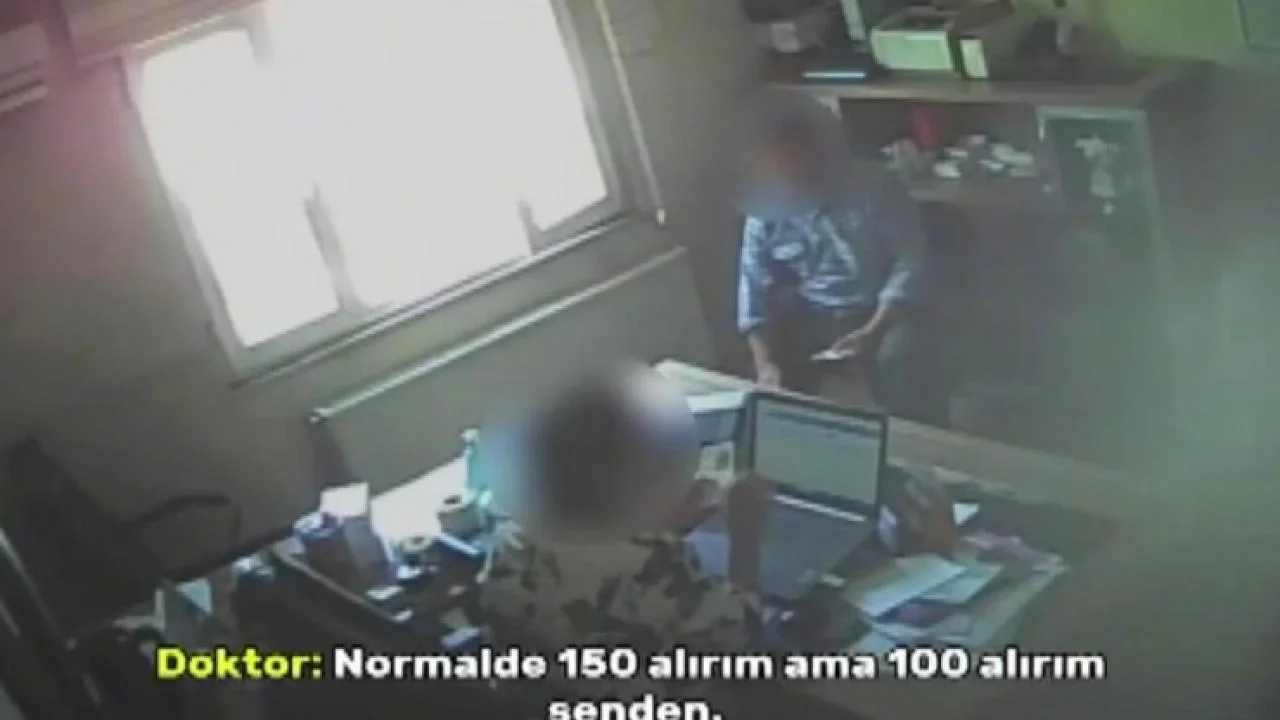 Doktorun bazı raporlara “ishal” veya “bronşit” gibi hastalıklar yazacağı, aldığı paraları bilgisayarının altına sakladığı ve soruşturmayı açanlara yönelik tehditlerde bulunduğu anlar kayıtlara yansıdı.