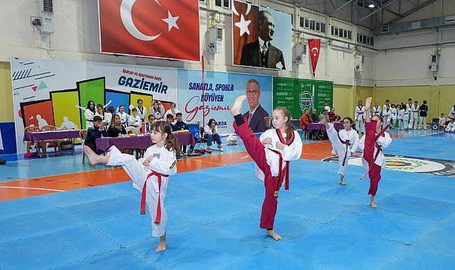Gaziemir Belediyesi’nin düzenlediği taekwondo kursuna katılan sporcular, bir üst kuşağa çıkmak için kuşak atlama sınavında ter döktü, yeteneklerini sergiledi.