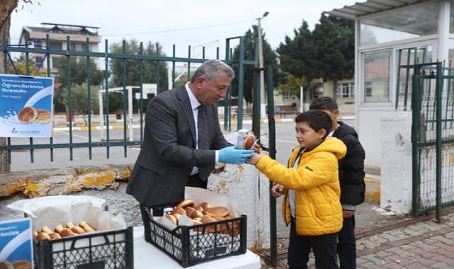 Belediyelerin hizmetlerinin sadece temizlik ve yol yapmadan ibaret olmadığını söyleyen Güzelbahçe Belediye Başkanı Mustafa Günay, “Belediye sadece temizlik yapmaz, park bahçe yapmaz, ya da yol yapmaz gönül de yapar, gönüllere de girer. Yeni başlatmış olduğumuz bu hizmetle ilk ve ortaokula giden çocuklarımızın süt ve poğaçalarını ders zili çalmadan okul kapılarında dağıttık. Çocuklarımız zihinleri açık ve mutlu bir şekilde derslerine girecekler. Önceden planladığımız ama ilk ara tatil sonrası uygulamayı düşündüğümüz bir projeydi. Her sabah ekiplerimiz beş devlet okulunun kapısında