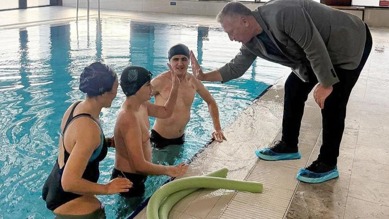 İzmir Büyükşehir Belediyesi’nin üç yıldır kesintisiz sürdürdüğü ve 47 özel gereksinimli kursiyere yüzme eğitimi verdiği “Sevgi Varsa Engel Yoktur, Hep Birlikte Güçlüyüz” projesi, Dünya Engelliler Günü kapsamında düzenlenen anlamlı bir etkinlikle taçlandı. Bornova Aşık Veysel Rekreasyon Alanı’ndaki Havuz İzmir’de gerçekleştirilen organizasyonda, otizmli ve down sendromlu kursiyerler eğitmenler eşliğinde keyifli anlar yaşadı. Etkinliğe Gençlik ve Spor Hizmetleri Daire Başkanı Berkhan Alptekin ile Spor Çalışmaları Şube Müdürü Gürcan Temizel katıldı. Türkiye Butik Pastacılar ve Şeker Hamurcular Derneği Başkanı Emine Kubat tarafından hazırlanan, üzerinde engelli çocuk figürleri bulunan şeker hamuru pastalar büyük bir coşkuyla kesildi. Pasta kesiminin ardından kursiyerlere özel yüzme boneleri dağıtıldı ve şeker hamurundan çiçek yapma etkinliği düzenlendi.