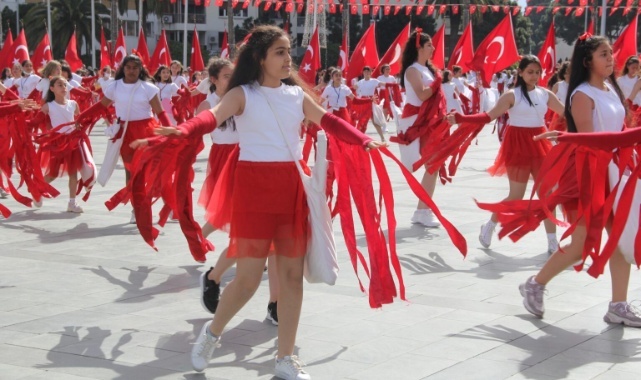 İzmir‘de 23 Nisan Ulusal Egemenlik ve Çocuk Bayramı programları çerçevesinde Cumhuriyet Meydanı’nda yapılan resmi törene vatandaşların ilgisi yoğun oldu. Her yaştan öğrenci meydanda yoğunluk oluştururken meydanda yaklaşık bin 500 öğrenci sahne alıp bayraklar eşliğinde görsel bir şölen oluşturdu. Çocuk bayramını kutlamak için bir araya gelen çocuklar birbirinden renkli gösteriler sundu.