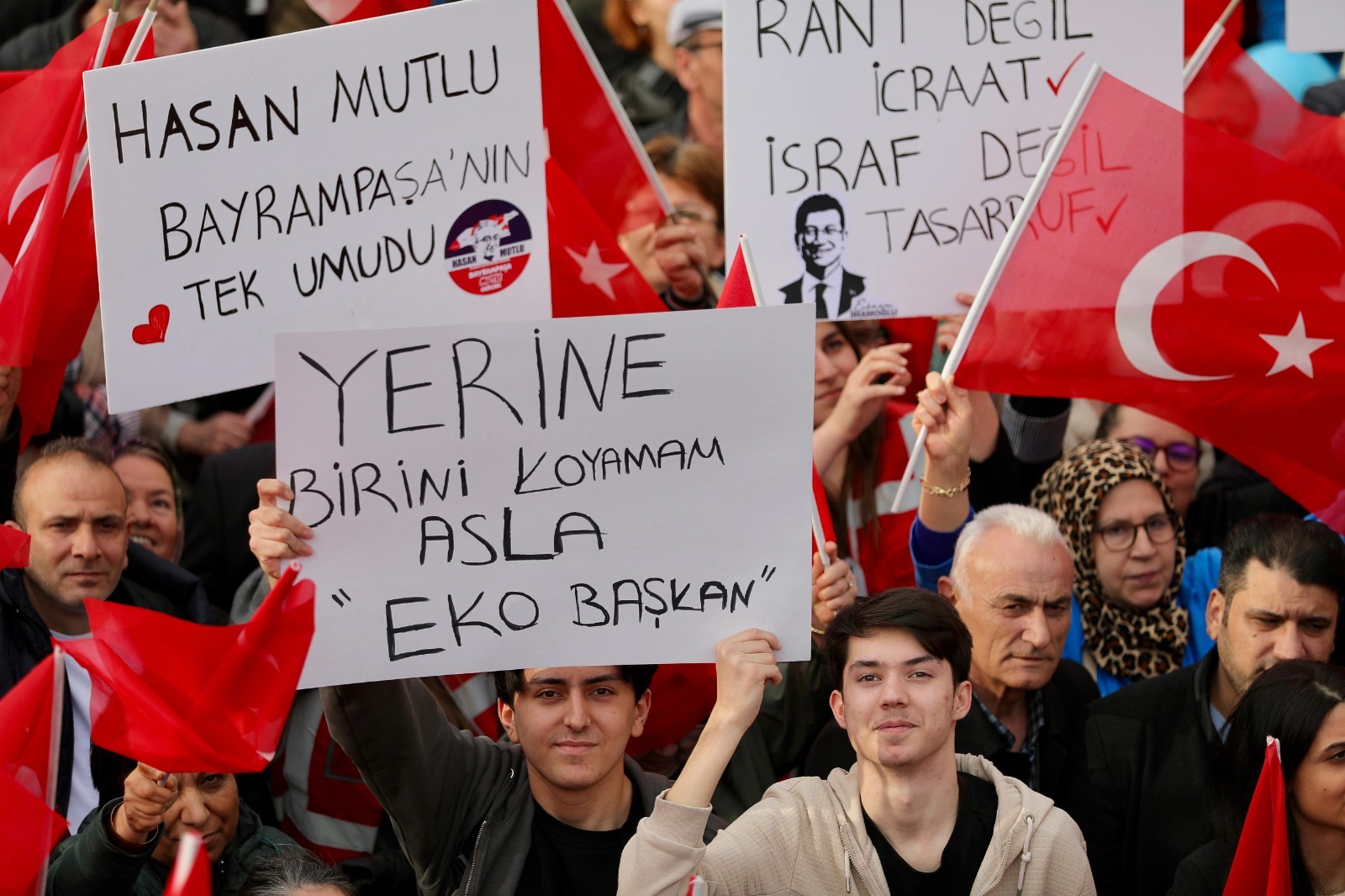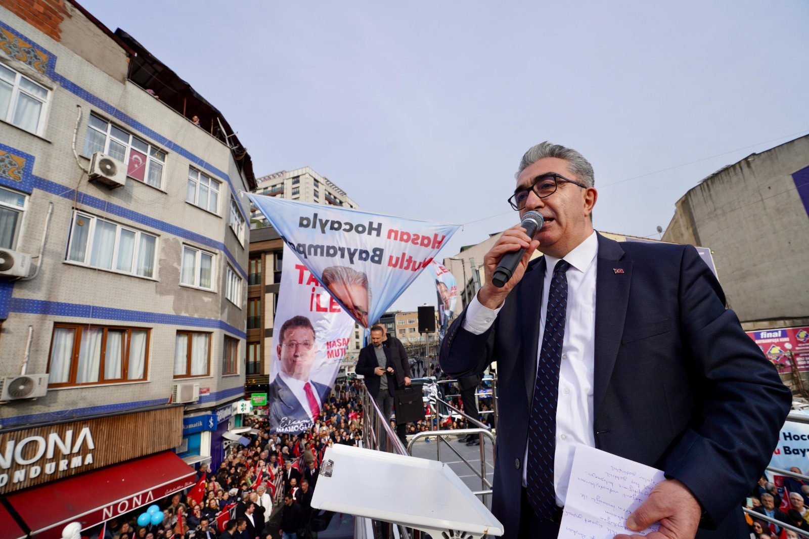 “Sevgili İstanbullular, bu zamana kadar bu kardeşiniz sizi hiç aldatmadı. Bundan sonra da asla aldatmayacak. Siz aldananı da sevmezsiniz, aldatanı da sevmezsiniz. Doğru mu? Hele hele Beton Kanalı hiç sevmezsiniz. Doğru mu. Ama milletine hizmet edeni seversiniz. Birlikte yol yürüyeceğiz. Hani ‘Oy verirseniz hizmet gelir, oy vermezseniz hizmet gelmez’ diyor ya Sayın Cumhurbaşkanı. Niye öyle diyor biliyor musunuz? Bak şunun için… O var ya, sizden korkuyor, korkuyor. Milletten korkuyor. Onun için öyle yapıyor. Bakın, 23 Haziran'da seçimi kaybetti, üç gün çıt çıkmadı. Bu seçimde, 31 Mart'ta öyle bir fark atacaksınız ki, iki hafta ortadan kaybolacak. Külliyeden çıkmayacak, külliyeden. Ondan sonra milletine esas görevi olan işleri yapmaya başlayacak. Becerir, beceremez. İnşallah becersin. Ama ekonomiyle uğraşacak. Emekli maaşını düzeltmeye çalışacak. İnsanların gerçek sorunlarına çözüm bulmaya gayret edecek. Yoksa, bu kardeşinize oy verin. Aksi takdirde; bunların kiiri, hükümet kibri, seçimden sonra milleti zamlara boğar, zamlara. Onun için Bayrampaşa'da mührü Hasan Mutlu'nun ismi olduğu yere basmaya hazır mıyız? İstanbul'da mührü, İstanbul Büyükşehir. Büyükşehir Belediye Başkanı noktasında Ekrem İmamoğlu'nun olduğu yere basmaya hazır mıyız? Hep birlikte çalışmaya hazır mıyız?”