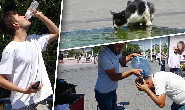 Sıcak havalar sokak hayvanlarını da zor durumda bıraktı. Kuşlar ve bir kedi, meydandaki süs havuzundan su içerek serinlemeye çalıştı. Taksim esnafı ise “Böyle sıcak görmedik. Termometre 40 derece gösteriyor ama hissettiğimiz neredeyse 60 derece” diyerek tepkisini dile getirdi.