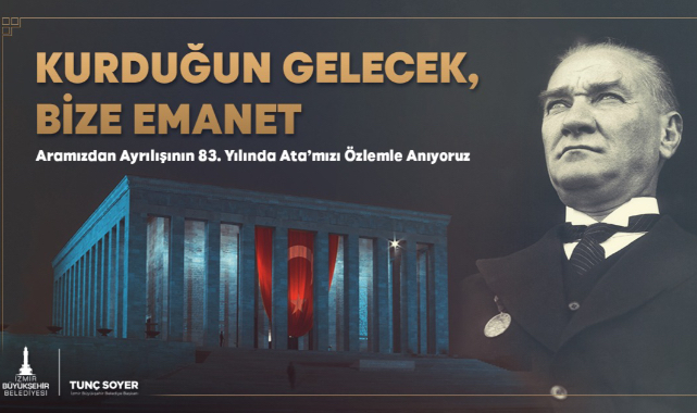 İzmir Büyükşehir Belediyesi ölümünün 83’üncü yıldönümünde Ulu Önder Mustafa Kemal Atatürk’ü anacak. Program Ata’ya saygı yürüyüşü ile başlayacak. 14.00'te Alsancak Limanı’nda buluşacak İzmirliler Atatürk’ün 350 metre uzunluğundaki dev posterini taşıyarak Cumhuriyet Meydanı'na kadar yürüyecek.