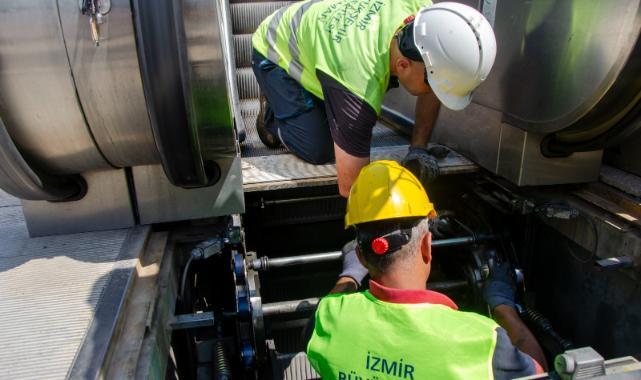 Kent genelinde 123 asansör ve 127 yürüyen merdivenin bakım ve onarımı 32 teknik personel ile yürütülüyor. Kentin kuzey ve güneyinde ayrı ekipler görevlendiriliyor. Söz konusu ünitelerin gerek rutin bakımları gerekse arızalara müdahale ve yedek parça değişimleri etkin bir şekilde yapılıyor. İzmir Büyükşehir Belediyesi Yapı İşleri Dairesi Başkanlığı Tesisler Bakım Onarım Şube Müdürlüğü bünyesinde asansör ve yürüyen merdiven şefi olarak görev yapan İlhan Özkan, “Vandalizm ve hırsızlık olayları ünitelerin faal tutulabilmesini güçleştiriyor. Ünitelerin sürekli çalışır halde tutulması için ekipler sahada etkin bir şekilde mücadele etse de özellikle yürüyen merdivenlerin acil stop düğmelerine basılarak durdurulması vatandaşların merdivenlerden faydalanmasını olumsuz etkiliyor. Gereksiz yere merdivenleri durdurma olaylarına tanık olan vatandaşlarımızın uyarıda bulunması ve ALO 153 Hemşehri İletişim Hattı’nı arayarak tarafımıza bilgi vermesi çok önemli. Asansörlerin kapılarının tekmelenmesi, butonların sökülmesi, elektrik kablolarının çalınması gibi olaylar da oluyor. Tanık olan vatandaşların İzmir Büyükşehir Belediyesi ve kolluk güçlerini arayarak zararın önlenmesi adına hareket etmesi gerekiyor” dedi.
