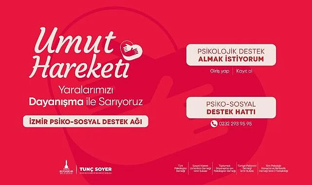 Psikososyal Destek Çalışma Ekipleri hem deprem bölgesinde hem de İzmir’de deprem sonrası psikososyal destek alanında çalışmalarını yürütüyor. Büyükşehir Belediyesi öncülüğünde kurulan Psikososyal Destek Ağı, İzmir’de ruh sağlığı ve psikososyal destek alanında faaliyet yürüten Türkiye Psikiyatri Derneği İzmir Şubesi, Türk Psikologlar Derneği, Sosyal Hizmet Uzmanları Derneği İzmir Şubesi, Toplumsal Dayanışma İçin Psikologlar Derneği, Türk Psikolojik Danışma ve Rehberlik Derneği İzmir Temsilciliği gönüllü çalışması ile hayata geçti.