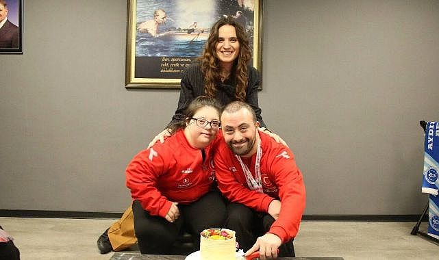 İzmir Büyükşehir Belediyesi Spor Kulübü, down sendromlu sporcuları Selin Durgut (23) ve Alper Öztürk (33) için özel bir tören düzenledi. Kulüp Başkan Vekili Tuğçe Gülcüler, "Bugün çok özel bir gün. Sevgiye doyduk. Alper ve Selin ile olmak bana umut ve sevgi verdi. Saf sevgiyi hissedebildiğimiz fazla an yaşamıyoruz. Bu anları yaşadığım için kendimi çok şanslı hissediyorum. İzmir Büyükşehir Belediyesi’nin sporcuları olması da bizim için ayrı mutluluk ve gurur meselesi" dedi.