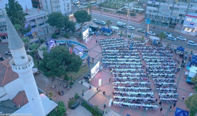 Ramazan dayanışmasını farklı ilçelerde düzenlediği toplu iftarlarla sürdüren İzmir Büyükşehir Belediyesi bu kez iftar sofrasını Aliağa’da kurdu. Aliağa Demokrasi Meydanı’nda düzenlenen iftara 3 bin kişi katıldı.
