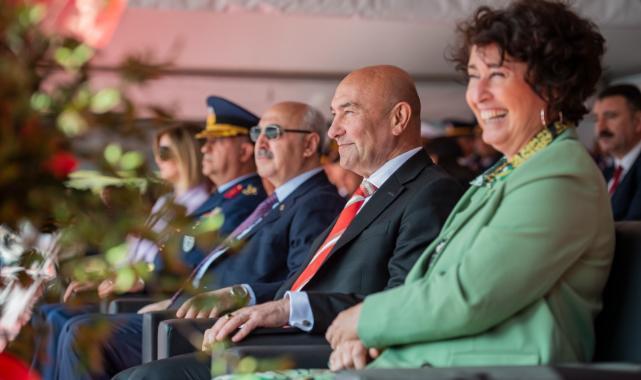 Törende yurttaşlarla bayramlaşan Başkan Tunç Soyer, çocuklarla hatıra fotoğrafı çektirdi. Cumhuriyet Meydanı'ndaki tören ilk ve orta öğretim kurumları öğrencilerinin gösterileri ile renklendi. Türk Halk Müziği korosundan bando takımına ve danslara kadar miniklerin sergiledikleri gösteriler izleyenleri büyüledi.