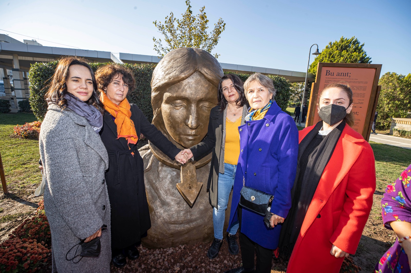 Birleşmiş Milletler, kadına karşı şiddetle mücadeleye dikkat çekmek için her yıl 25 Kasım-10 Aralık tarihleri arasında tüm dünyada turuncu rengin hakim olduğu etkinlikler yapılması konusunda karar aldı. Bu kapsamda İzmir Büyükşehir Belediye Meclisi’nde erkek şiddeti sebebiyle hayattan koparılan kadınların anılarını yaşatmak amacıyla kentin yeşil alanlarında turuncu renkte bitkilerin olduğu Turuncu Bahçeler oluşturulmasına karar verildi. TMMOB Peyzaj Mimarları Odası İzmir Şubesi’nin tasarımını yaptığı ilk Turuncu Bahçe içinde yer alan Kadın Anıtı ise Büyükşehir Belediyesi’nin geçen yıl düzenlediği Uluslararası Toplumsal Cinsiyet Eşitliği Karikatür Yarışması’na katılan Mojmir Mihatov’a ait eserin üç boyutlu hale getirilmesiyle üretildi.