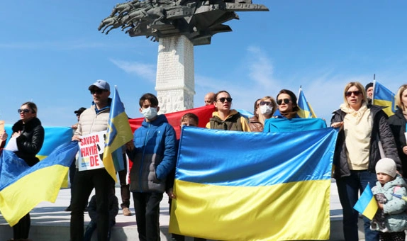 İzmir’de yaşayan Ukrayna vatandaşları, ülkelerinin toprak bütünlüğü ve egemenliğini desteklemek için basın açıklaması yaptı.