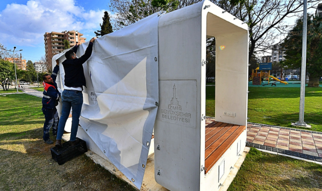 İzmir Büyükşehir Belediye Başkanı Tunç Soyer'in afetlere karşı dirençli kent inşa etme vizyonu doğrultusunda çalışmalarını sürdüren İzmir Büyükşehir Belediyesi, parklardaki kent mobilyalarını afet durumlarında halkın barınma, enerji ve temel ihtiyaçlarını karşılayacak şekilde yenilemeye başladı. İlk uygulama Bayraklı'daki Hasan Ali Yücel Parkı'nda yapıldı