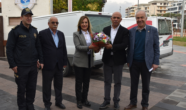 Müdür Şahne gelişinde Karşıyaka Muhtarlar Derneği Başkanı Fuat Pusat ve muhtarlar karşılandı, Alaybey Muhtarı Servin Akkuş tarafından bir buket çiçek takdim edildi. Birlikte kahvaltı yapıldı.
