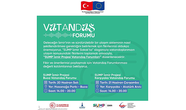 Tüm yurttaşların katılım sağlayabileceği forumların ilki 20 Haziran Salı günü Buca Hasanağa Bahçesi’nde düzenlenecek. Karşıyaka Vatandaş Forumu ise 21 Haziran Çarşamba günü 14.00-20.00 saatleri arasında Karşıyaka Atatürk Anıtı’nın bulunduğu meydanda yapılacak.