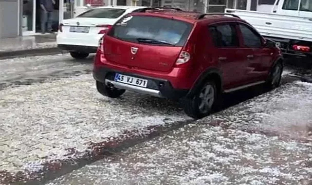 İzmir'in Menemen ilçesinde bir anda başlayan sağanak yağış yerini doluya bıraktı.
