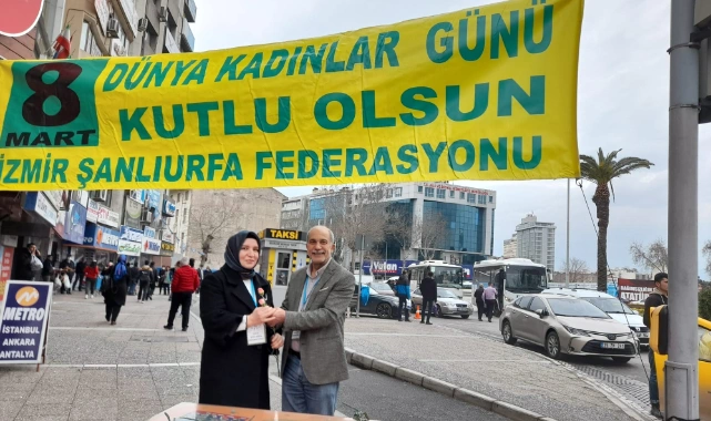 İzmir Şanlıurfa Federasyonu 8 Mart Dünya Emekçi Kadınlar Günü nedeniyle 9 Eylül Meydanı’nda etkinlik düzenledi. Etkinlikte İzmir Şanlıurfa Federasyon Başkanı Ferit Mızraklı, federasyon yöneticileri ve üyeleri yer aldı.