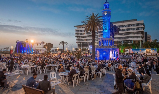 İzmir Büyükşehir Belediyesi’nin Konak Atatürk Meydanı’nda verdiği iftar yemeği, 3 bin İzmirliyi bir araya getirdi. Ramazan ayı boyunca Büyükşehir Belediyesi kentin çeşitli yerlerinde toplam 600 bin kişilik iftar yemeği dağıtacak. İzmirliler de Halkın Bakkalı web sitesi üzerinden iftar sofralarına destek olabilecek.