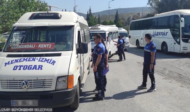 İzmir Büyükşehir Belediyesi Zabıta Dairesi Başkanlığına bağlı Zabıta Trafik Şube Müdürlüğü ile Çevre ve İmar Zabıtası Şube Müdürlüğü ekipleri, Ramazan Bayramı öncesinde İzmir Şehirlerarası Otobüs Terminali’nde denetim yaptı.