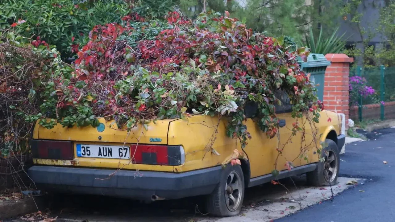 Üçkuyular Mahallesi'nde ikamet eden Mustafa Artun, AA muhabirine 'Yaklaşık 3 yıldır burada yaşıyorum. Otomobilin üzerindeki sarmaşıklar daha kısaydı. Lastikleri de biraz şişikti ama son hali bu. Kaderini bekliyor.' dedi.