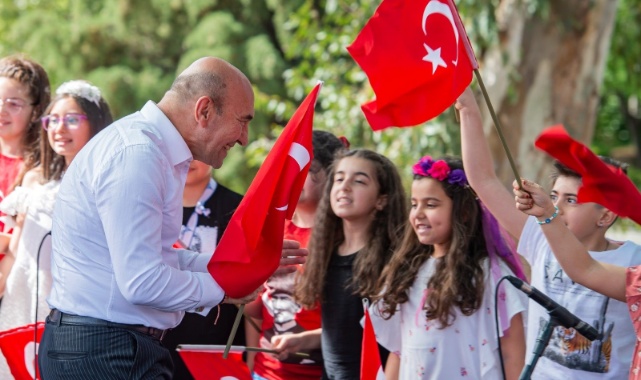 İzmir Büyükşehir Belediye Başkanı Tunç Soyer, 23 Nisan Ulusal Egemenlik ve Çocuk Bayramı kutlamaları için Kültüpark'ta çocuklarla bir araya geldi. 23 çocukla birlikte çekilen “İzmir İçin Söyle Çocuk Korosu” videosunun tanıtımına da katılan Başkan Soyer, sahnede miniklerle eğlenceli anlar yaşadı.