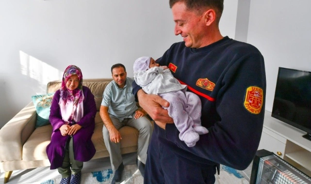 Her gün onlarca yangın ve kaza ihbarına koşan ve hayat kurtarmak için mücadele eden İzmir Büyükşehir Belediyesi İtfaiyesi geçen hafta yürekleri ısıtan bir kurtarma operasyonuna imza attı. Buca’nın Çamlıkule Mahallesi’nde bir apartmanda çıkan yangın alt katları sarınca dördüncü katta yaşayan Havva Araz ve 1,5 aylık bebeği Zümra Nehir dumanlar arasında mahsur kaldı. Umutların tükenmek üzere olduğu bir anda genç anne ve bebeğinin imdadına İzmir İtfaiyesi’nin alev savaşçıları yetişti. Minik Zümra Nehir itfaiye personeli Yiğit Özer’in kolları arasında yanan binadan çıkarıldı. Yaşananlar ne kadar korkutucu olsa da mutlu biten hikayenin iki kahramanı Yiğit Özer ve Zümra Nehir bebek bir hafta sonra yeniden bir araya geldi. Araz ailesine geçmiş olsun dileklerini ileten Özer, bu kez Nehir bebeği sevmek için kucağına aldı.