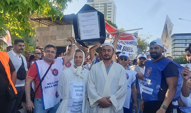 Türk-İş’e bağlı sendikalar, AK Parti İzmir İl Binası önünde düzenledikleri tabutlu eylemle kamu işçilerine sunulan zam teklifini protesto etti. Eylemde gıyabi cenaze namazı kılınırken, işçiler geçim sıkıntısına dikkat çekti.