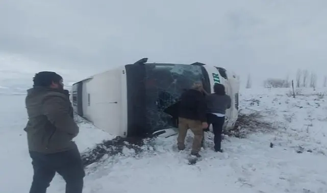 Kars'ta yolcu otobüsü devrildi: Çok sayıda yaralı var