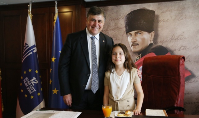 Karşıyaka Belediye Başkanı Dr. Cemil Tugay, 23 Nisan Ulusal Egemenlik ve Çocuk Bayramı dolayısıyla makam koltuğunu bir günlüğüne Nebahat Alparslan Karadavut İlkokulu öğrencisi 10 yaşındaki Mine Aktop’a devretti. Konuya ilişkin açıklama yapan çocuk başkan Mine Aktop, “23 Nisan Ulusal Egemenlik ve Çocuk Bayramı dolayısıyla bana verilen Karşıyaka Belediye Başkanlığı görevini kısa süre de olsa yapmanın heyecanını yaşıyorum. Çünkü Karşıyaka benim için sadece yaşadığım bir kent değil İzmir’imizin kalbidir. Bu anlamda Ulu Önderimiz Mustafa Kemal Atatürk’ün Ulusal Egemenlik ve Çocuk Bayramı’nda bizleri bu koltuklara oturtması ülkemizin teminatının bizler olduğunu bir kez daha kanıtlamış oluyor” dedi.