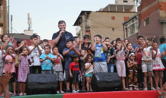 Karşıyaka Belediye Başkanı Dr. Cemil Tugay, konuşmasını sahneye davet ettiği çocuklarla birlikte yaptı. Tugay, “Kurban Bayramımız mübarek olsun, dualarınız kabul olsun. Biz de bayramda bir kutlama yapmak istedik. Tabi ki ilk adres olarak Örnekköy aklımıza geldi. Sizlerle, çocuklarla birlikte olmak ve sizleri mutlu görmek her şeyden değerli. Sizlerle daha önce de bu tarz güzel etkinliklerde bir araya geldik. Gönlümde hepinizin yeri ayrı, sizleri kendime çok yakın hissediyorum. Yanımdaki çocuklar en masum varlıklar. Sizler zor günler yaşadınız. Ancak çocuklarımızın daha güzel günler yaşaması için sizlere de, bana da düşen görevler var. Çocuklarımızla her zaman birlikte olacağız. Onlara güzel bir gelecek hazırlamak biz büyüklerin görevidir. Bu eğlenceler, şenlikler bizlerin birlik ve berberliğini simgeler” diye konuştu.