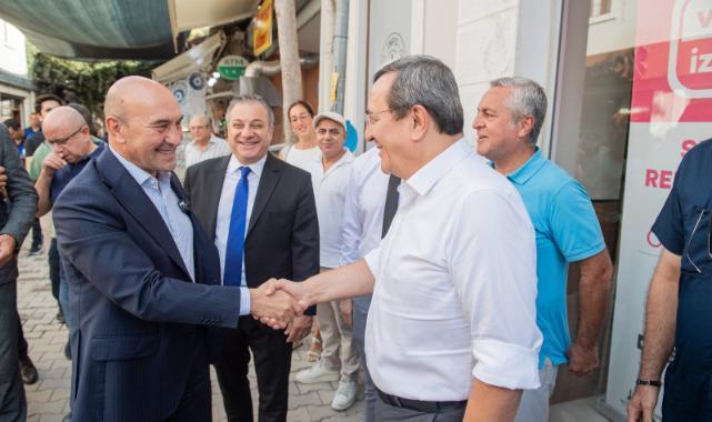 İzmir Büyükşehir Belediye Başkanı Tunç Soyer, 770 milyon liralık yatırımla yenileme çalışmaları devam eden Kemeraltı çarşısının esnafıyla bir araya geldi. Atık su, yağmur suyu, aydınlatma ve gerilim hatlarını yenileyen, yolları düzenleyen Büyükşehir Belediyesi’ne teşekkür eden esnaf, Başkan Soyer’e memnuniyetini dile getirdi.