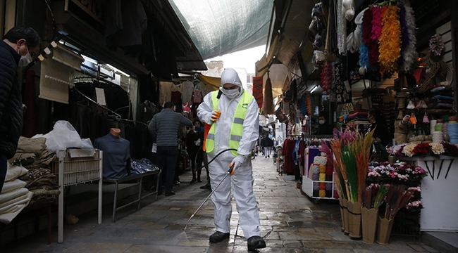 Pandemi ile mücadele kapsamında Konak Belediyesi’nin esnafa desteği sürüyor. Esnafın ve vatandaşın, sağlıklı ve güvenli alışverişi için Tarihi Kemeraltı Çarşısı’nda başlatılan dezenfeksiyon çalışması ile Çarşı’daki dükkanlar teker teker dezenfekte ediliyor.