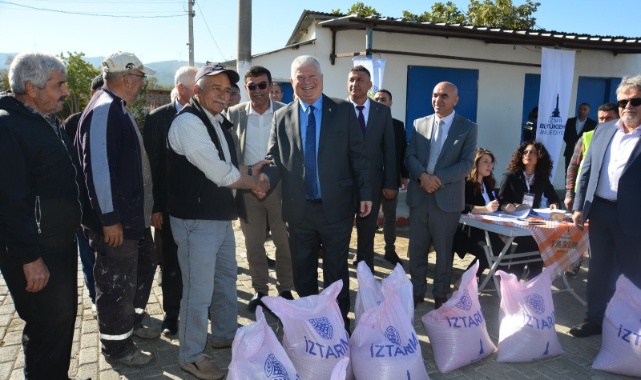 İzmir Büyükşehir Belediyesi Başkan Vekili Mustafa Özuslu ve İzTarım A.Ş. Genel Müdürü Murat Onkardeşler’in katıldığı törende 26 üreticiye 8 ton karakılçık tohumu verildi. Tohumlar 400 dönüme ekilecek.