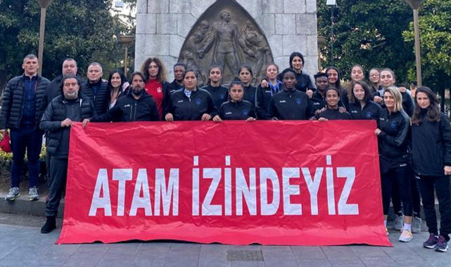 Konak Belediyesi Kadın Futbol Takımı, sezonun birinci devresini Samsun’da 2- 1 skorla aldığı galibiyetle kapattı. Maç sonrası İlkadım ilçesindeki Atatürk Anıtı’na koşan takım oyuncuları, geçtiğimiz günlerde hain saldırıların hedefi olan onur anıtının önünde “Atam İzindeyiz” pankartı açarak Mustafa Kemal Atatürk’e, kurduğu Cumhuriyet’e ve değerlerine sahip çıkacaklarının sözünü verdi.