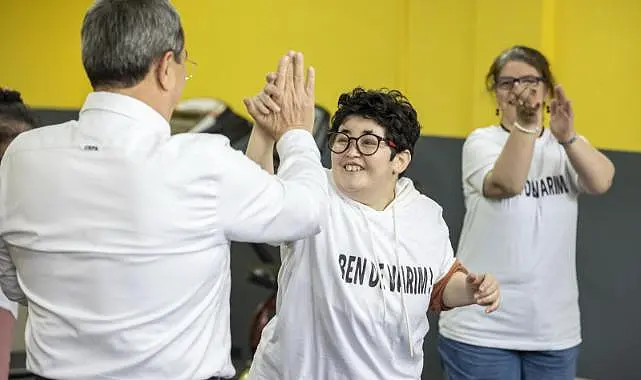 Konak Engelsiz yaşam Köyü’nün spor ve hareket eğitimi salonunda çocuklarla spor yapan Başkan Batur, atölyelerdeki başarılı çalışmalarıyla ve söylediği şarkılarla bilinen Merve’yle birlikte step tahtasında antrenman yaptı. Kısa bir süre önce faaliyete geçen spor salonu ve hareket eğitimi biriminde koşu bantları, kondisyon bisikleti, step tahtaları, bireysel antrenman setleri ile futbol, basketbol, voleybol gibi takım sporları için gerekli malzemeler bulunuyor. Spor salonu sayesinde, merkeze devam eden öğrencilerin sağlıklı ve zinde kalmasının yanı sıra, bazı özel grupların daha çok ihtiyaç duyduğu kas güçlendirmesi için de fizik tedaviyle beraber önemli katkı sağlanıyor. Salonda tempolu yürüyüş, koşu, bisiklet egzersizi, pilates gibi yağ yakımı, kas güçlendirme ve postür düzeltmeye yönelik çalışmalar yapılıyor. Müzikle beraber yapılan kardiyo çalışması ise öğrencilerin en keyif alarak yaptıkları egzersizlerin başında geliyor. Toplu branşlar ise çocukların grupla hareket etme ve takım ruhunu pekiştirerek sosyal gelişimlerine katkı sağlıyor.