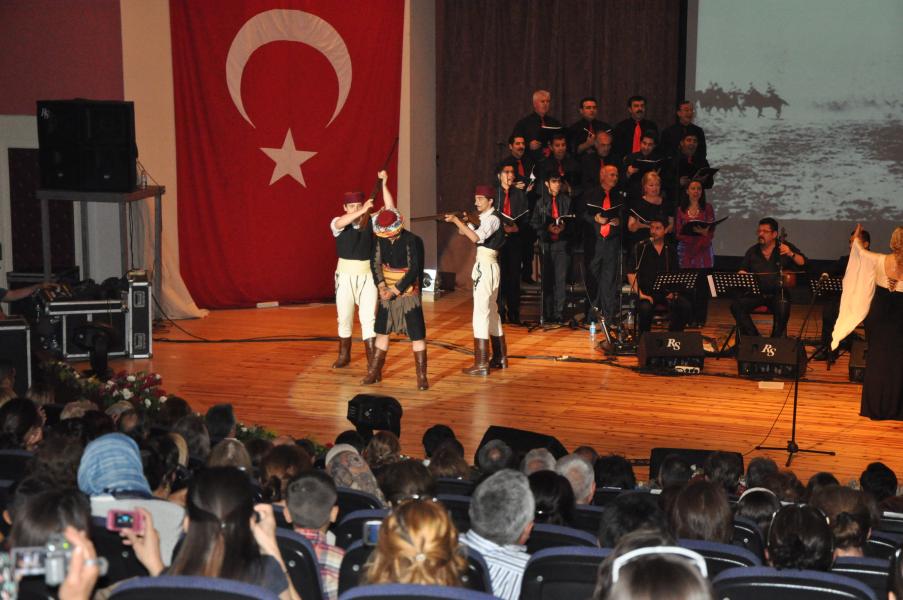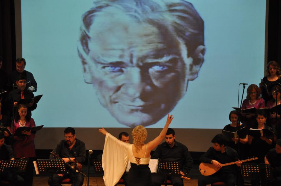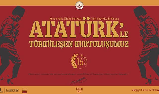 16 Mayıs saat 20.00’da Ahmet Adnan Saygun Sanat Merkezi’nde düzenlenecek gösteri hakkında Konak Halk Eğitimi Merkezi Müdürü Hüseyin Akpınar; ‘Bir türküdür Anadolu… Orada; zeybekler, bozlaklar, hoyratlar, baraklar, semahlarla, anlatılır düğünler-dernekler, ayrılıklar-sevdalar, ağıtlar-kahramanlıklar… Türkün hep can yakınında, barışta tuğu, seferde silahının yoldaşıdır; ıklığlar, kopuzlar, bağlamalarla, davul ve zurnalar. Türk hasata da sefere de türkü çığırarak varır. Bu yüzden daha çok türkülerle anlatılır Anadolu… O yüzden biraz da "Atatürk'le Türküleşen Kurtuluşumuz“ gösterimizde, büyük önderimiz, Başkomutan Mustafa Kemal Atatürk ve Kurtuluş Ordularının türküleşen zafer öyküsünü bizi bize anlatan türkülerimiz eşliğinde anlatıyoruz. Cumhuriyetimizin 100. Yılı etkinlikleri çerçevesinde, Gürnüş Öztürk yönetimindeki Konak Halk Eğitimi Merkezi Türk Halk Müziği topluluğunun sahneleyeceği "Atatürk'le Türküleşen Kurtuluşumuz“ gösterimize tüm İzmirliler davetlidir.’’ İfadelerini kullandı.