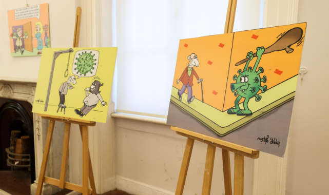 Karikatürist Mustafa Yıldız’ın 25 eserinden oluşan “Koronalı Çizgiler” sergisi, BBKSM’de beğeniye sunuldu. Sergideki eserlerin ulusal ve uluslararası yarışmalara da katıldığını belirten Yıldız, ”Karikatürlerimin bazıları düşünsel boyutta, bazıları ise komik. İçinde bulunduğumuz bu zorlu pandemi sürecinde sergiyi ziyaret edenlerin hem eğleneceği hem düşüneceği bir sergi olsun istedim” diye konuştu.