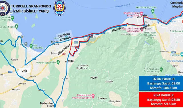 İzmir Valiliği, Turkcell Granfondo İzmir Bisiklet Yarışı kapsamında Pazar günü saat 06:00-15:00 arasında bazı yolların trafiğe kapatılacağını duyurdu.