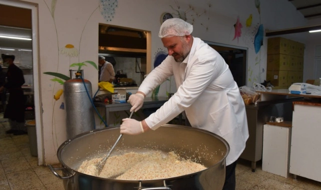 Menemen Belediye Başkan Vekili Aydın Pehlivan, Belediyenin Aşevinde ihtiyaç sahiplerine her gün 7000 iftarlık yemek hazırlayan personelle birlikte mutfağa girdi. Garnitürleri soyup, yemeği kavuran Pehlivan, “Ramazan’ın dayanışma ruhunu bu yıl da en üst noktaya taşıdık. Rabbim tüm hayırlarımızı kabul eylesin” diye konuştu.